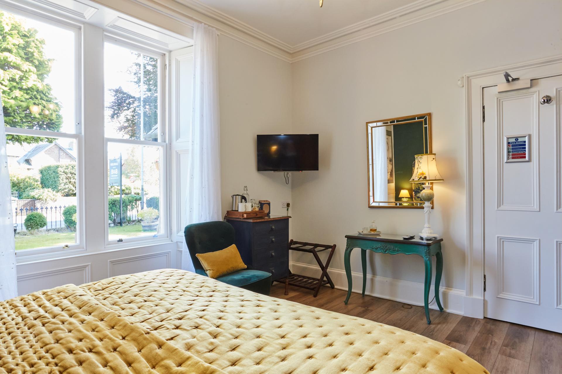 The Orchid Room is on the ground floor and features a comfortable super king bed and pillows with quality linen to aid you in a good nights sleep. All bedrooms have hospitality trays, complimentary Wi-Fi throughout the house, TV in all bedrooms.